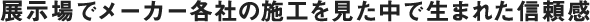 表面的な部分だけではなく、安全性や耐久性、家づくりに関わる人たちなどを、総合的に見て判断した方がいいと思います。私の場合、お話したように特別な状況だったので、建材の管理方法などまで見て、納得して買うことができましたが、モデルルームだけでなく、工場研学や現場の見学に行くことでいろいろ見えてきます。一条工務店仙台の場合、いつ現場に行っても、職人さんたちがいい応対をしてくれました。そういうことから信頼が生まれるんだと思います。まあ、まずは家をたくさん見ること。100棟以上見るといいですよ(笑)。